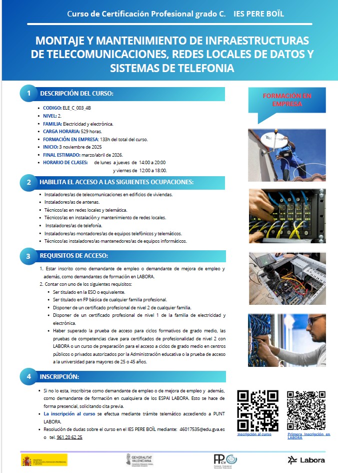 Nuevo curso de Certificación Profesional de grado C (nivel 2) para personas en el paro, o en búsqueda de mejora de empleo.
